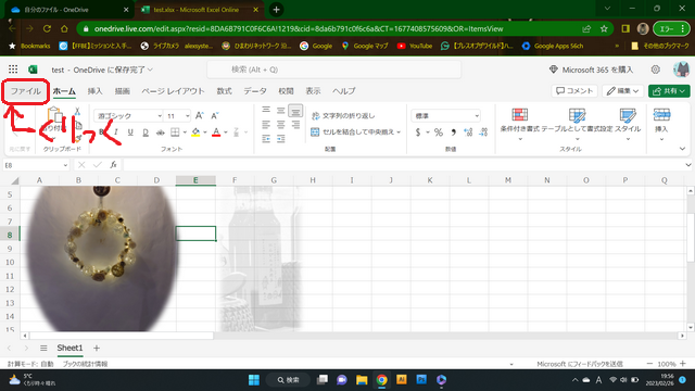 1)エクセル 画面上部のメニュー「ファイル」をクリック