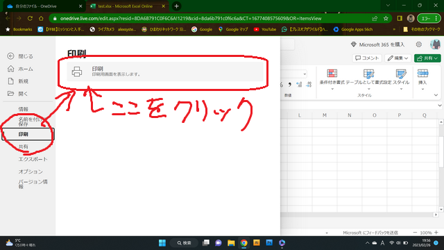 「印刷」が表示されてなければ三点リーダー(・・・)をクリックすれば表示されます。