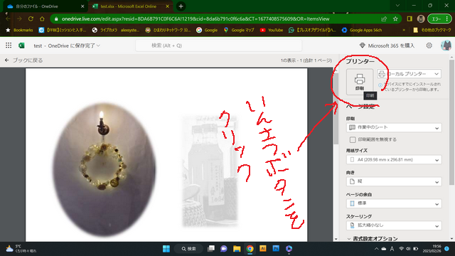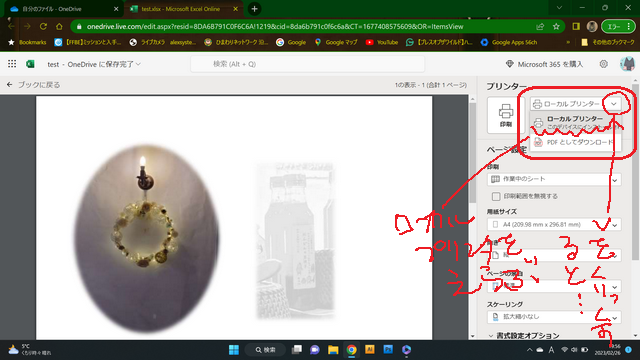 「印刷」ボタンの右に利用できるプリンターで「ローカルプリンター」を選択