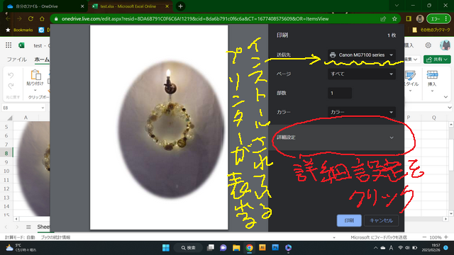 5)プリンター独自のメニューが表示するので「詳細設定」をクリック