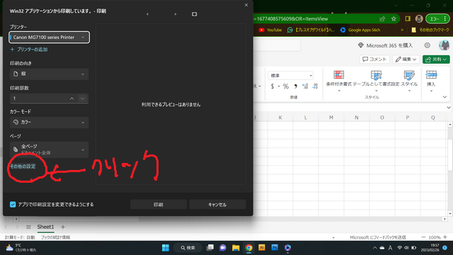 ちなみに一番下の「システムダイアログを使用して印刷」をクリックし